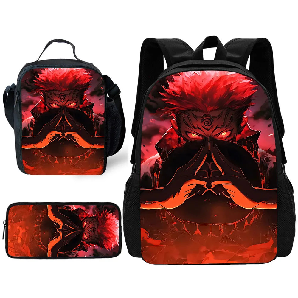 Ensemble sac à dos d'école pour enfants Anime Jujutsu Kaisen – Comprend un sac à lunch et une trousse | Cadeau idéal pour garçons et filles